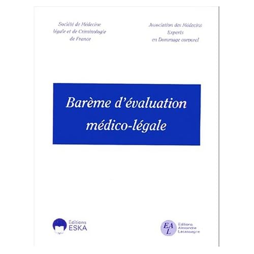 Le nouveau Barème d évaluation médico-légale tente de répondre à la volonté, exprimée de longue date, d évaluer l incapacité permanente dans une perspective fonctionnelle. Cette nouvelle édition propose une double approche : - L une traditionnelle, fondée sur l analyse des lésions et déficiences, - L autre, plus innovante, fondée sur l analyse des diverses fonctions (motrices, sensorielle, cardiorespiratoire, métabolique, urinaire ...) et la définition de taux plafonds, et de niveaux d incapacité. Autres innovations : - Le Barème ne traite pas exclusivement de l incapacité permanente, et propose des modes d évaluation des souffrances endurées, tant physiques que psychologiques, du préjudice esthétiques, et des atteintes de la fonction sexuelle, pour lesquels des critères d appréciation sont exposés, et une hiérarchisation proposée. - Contrairement aux éditions précédentes, limitées aux pathologies d origine traumatique, la nouvelle édition aborde l ensemble de la pathologie, ce qui sera particulièrement utile en matière de responsabilité médicale et d assurances de personne. PUBLIC : Outil indicatif de référence, il s adresse à tous, médecins, juristes, et victimes, intéressés par l évaluation du dommage corporel. L AUTEUR : Cet ouvrage est le fruit d un travail collectif, mené sous l égide de la Société de Médecine Légale et de l AMEDOC, avec le concours de la Compagnie Nationale des Experts Médecins (CNEM) et l ANAMEVA. Il a été réalisé par une centaine de spécialistes, Professeurs de médecine légale, Experts Judiciaires et Experts spécialisés dans l évaluation du dommage corporel. Outil indicatif de référence, il s adresse à tous, médecins, juristes et victimes, intéressés par l évaluation du dommage corporel.